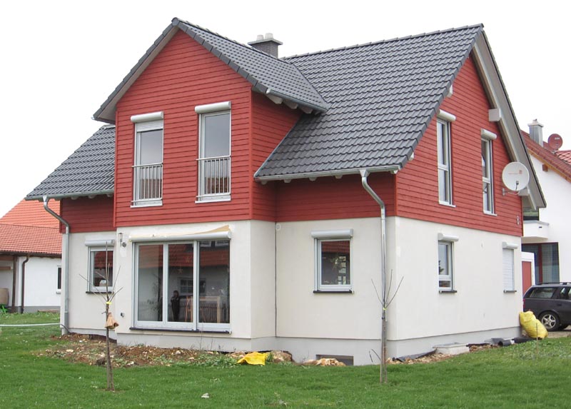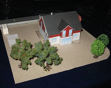 Der Vergleich mit dem fertigen Haus zeigt: fast genauso haben wir es gemacht bloß die Bäume brauchen noch.