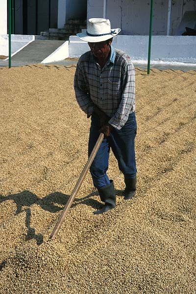 Kaffeebohnen, gewendet wird natürlich in Handarbeit...